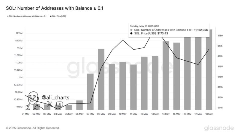 - Ali Martinez announced that the number of wallets holding Solana has reached an all-time high, approaching 11.16 million.