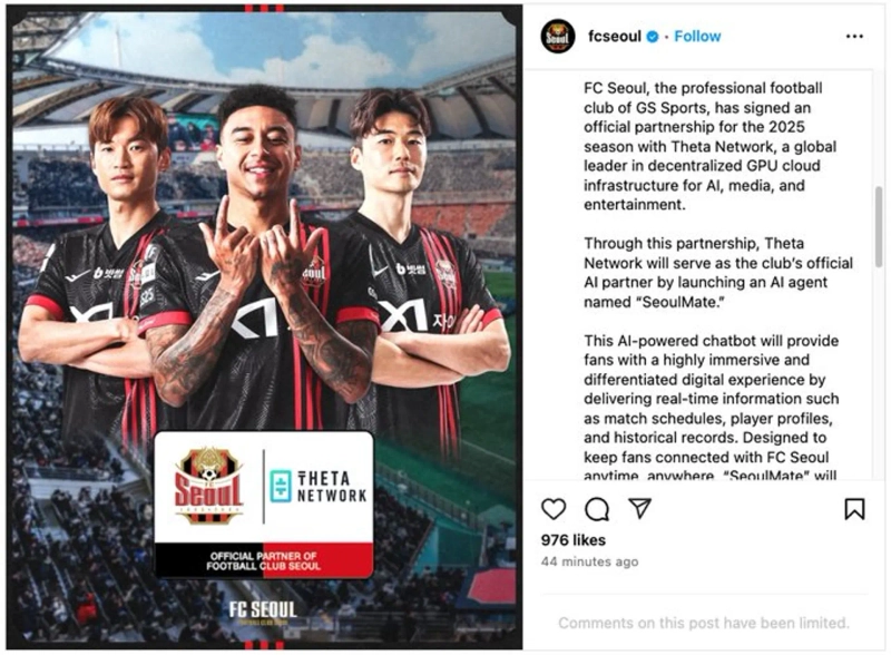 - Theta announced a partnership with FC Seoul to start operating the AI agent 'Seoul Mate'.