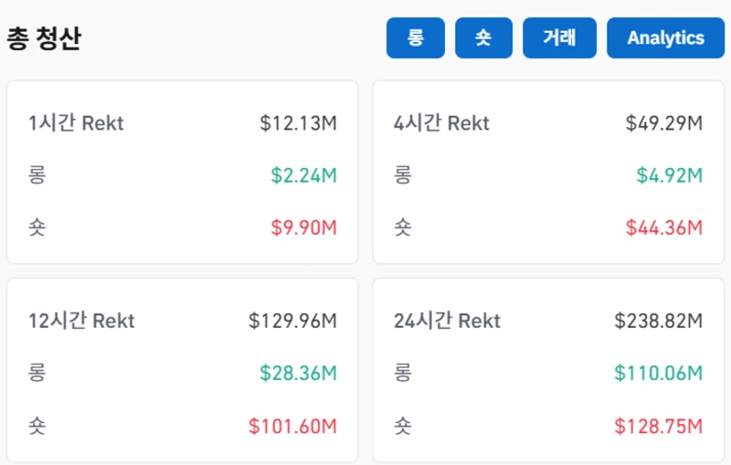 In the past 24 hours, the liquidation volume of positions in the virtual asset (cryptocurrency) perpetual futures market has reached $238.82 million.