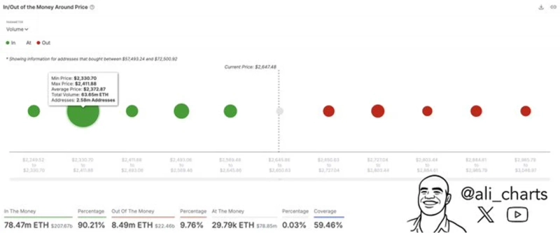 On-chain analyst Ali stated on the 23rd via X (formerly Twitter), "Ethereum (ETH) has formed a solid support line around $2370, and there is no clear resistance line above this area."