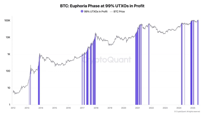On the 27th (Korean time), a contributor to Dark Post CryptoQuant reported that "99% of Bitcoin's total Unspent Transaction Outputs (UTXO) are in a profit state," indicating "a significant profit-taking opportunity in the market."