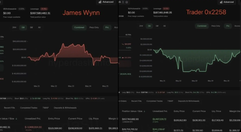 According to the on-chain data analysis account Lookonchain on the 27th (Korean time), a trader took a short position when James Win opened a long position, and conversely, took a long position when he opened a short position, earning $5.6 million in 3 days.