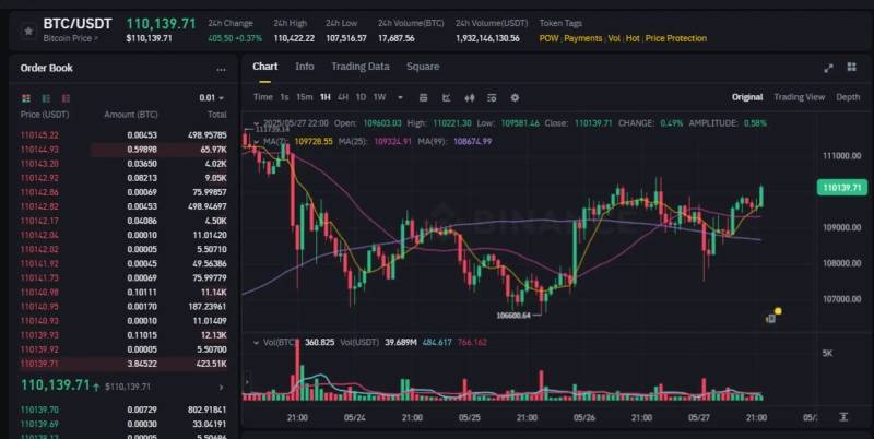 As of 10:09 PM, Bitcoin is trading at $110,139 on the Binance USDT market, up 0.37% from 24 hours ago.