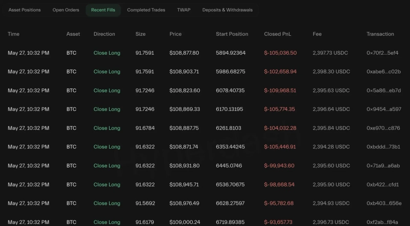 - James Win had previously attracted market attention by building a long position of 5,676 BTC, with his liquidation price known to be $108,010.