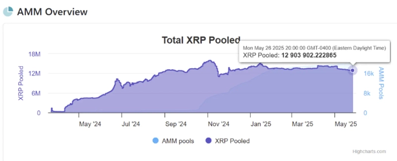 - It was reported that the amount of XRP locked in the market maker (AMM) pool of the Ripple Ledger decentralized exchange (DEX) has decreased to 12,906,712.