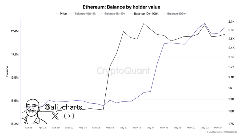 On the 28th (local time), cryptocurrency analyst Ali Martinez announced on X (formerly Twitter) that "whales accumulated more than 1 million ETH last month." This amounts to $2.628 billion (approximately 3.6 trillion KRW) based on the current ETH price.