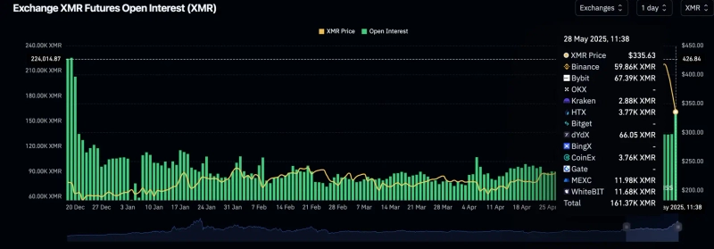 Privacy coin Monero (XMR) has seen its open interest (OI) reach its highest level since December last year.