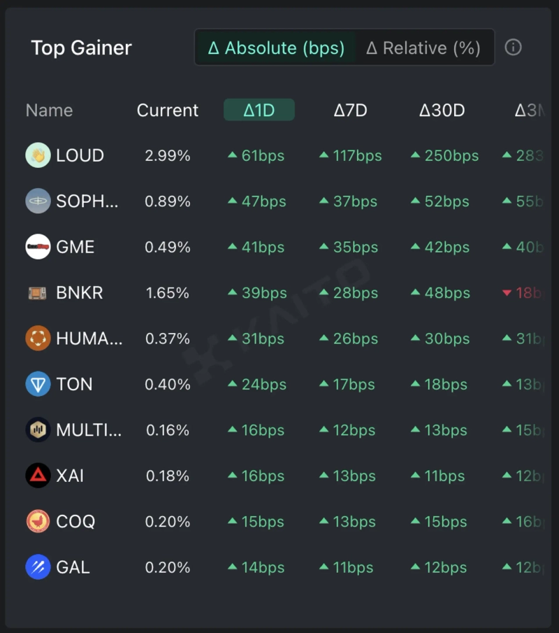 According to the top gainers on the Token Mindshare (a metric quantifying the influence of specific tokens in the virtual asset market) of the AI-based Web3 search platform Kaito, the top 5 virtual assets that people are most interested in as of the 29th are Sophon (SOPH), GameStop (GME), Toncoin (TON), Xai (XAI), and Coqoin (COQ).