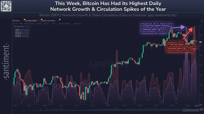 As the price of Bitcoin (BTC) consolidates just below $105,000, attention is being drawn to a significant increase in on-chain activity on the network.
