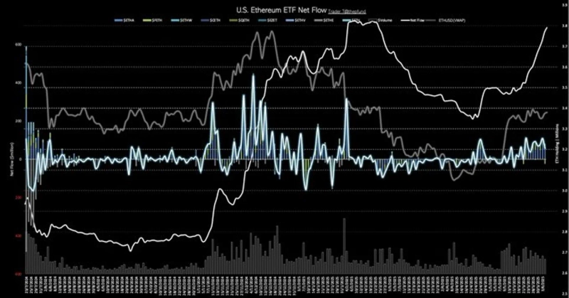 The US Ethereum (ETH) spot ETF has continued to attract capital inflows for nearly two weeks.