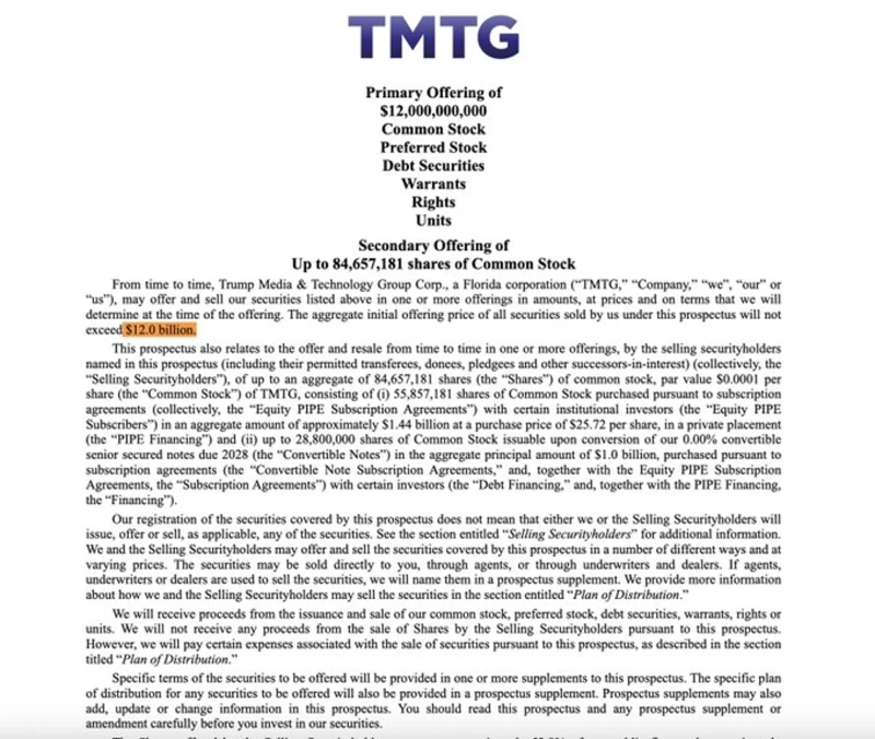 Earlier that day, Trump Media submitted a private placement registration statement (S-3) to the U.S. Securities and Exchange Commission (SEC). This is known to be related to building up a Bitcoin reserve.
