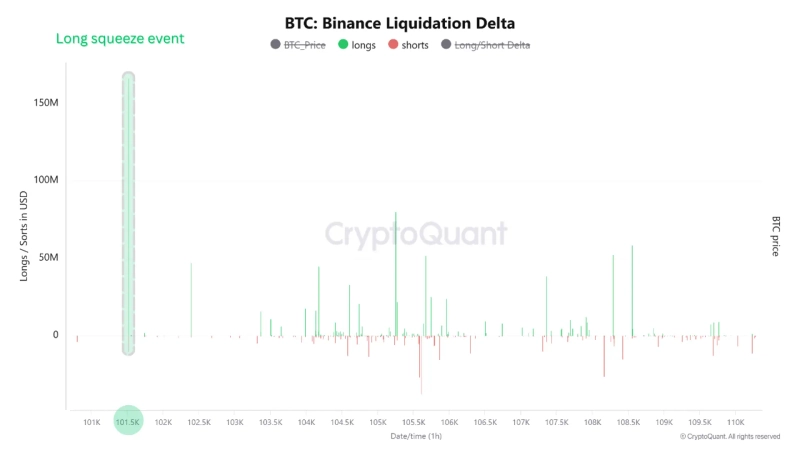 On the 7th, Amal Taha, an analyst at the digital asset analysis platform CryptoQuant, stated in a Quicktake report, "Recently, after the Bitcoin price experienced a short-term drop on Binance, long positions totaling around $160 million (approximately ₩220 billion) were liquidated." She added, "Most liquidation orders were concentrated around the $101,000 level, with excess leveraged buy positions being mainly cleared out."
