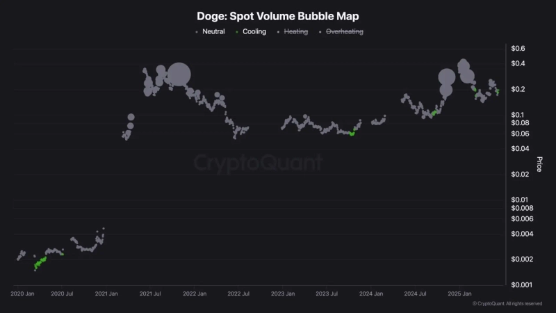 On the 11th (local time), CryptoQuant contributor crypto sunmoon reported, "While Dogecoin's price rebounded after Elon Musk apologized to Donald Trump, if you look at the recent bottom (green) area of the spot trading volume bubble map, the volume is still at a low level."