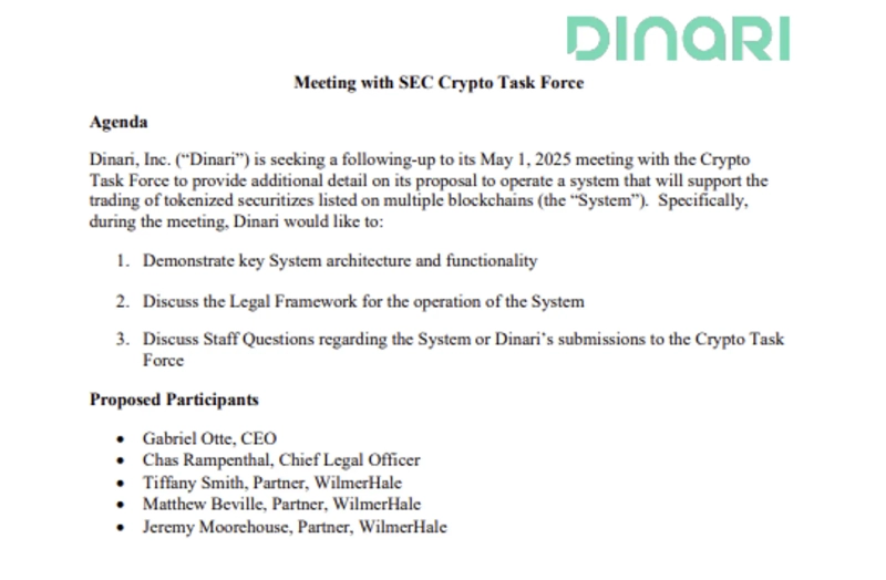 U.S. SEC Virtual Asset Task Force Meets with Dinari and Wilmer Cutler..."Discussing Regulatory Approaches"