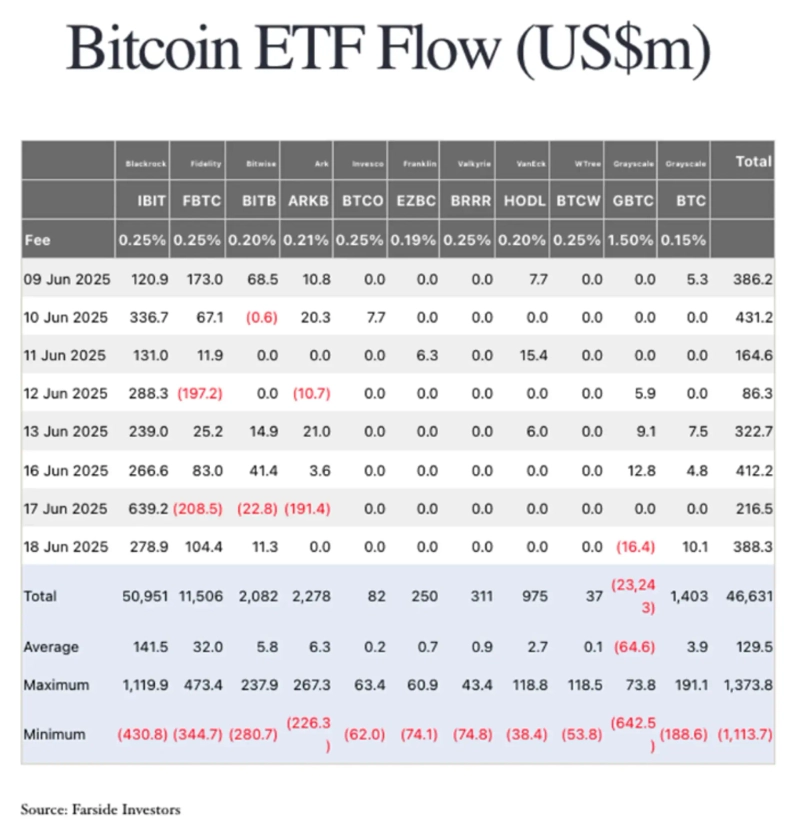 Despite heightened geopolitical tensions, last week’s inflows to spot Bitcoin ETFs continued. Total inflows last week reached $1.391 billion, reflecting continued strong buying momentum.