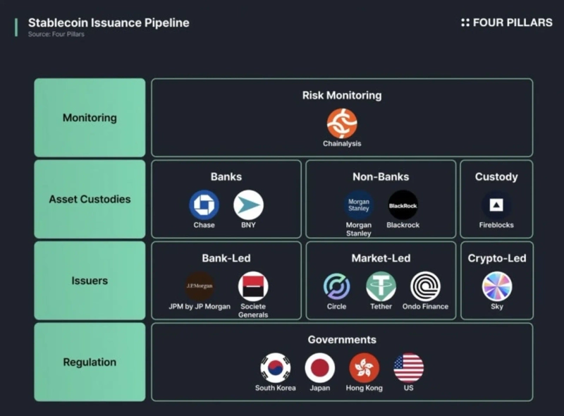 Going forward, capital market-based issuance models will drive stablecoin market growth. Traditional models mainly involve banks issuing stablecoins directly with bank deposits as collateral. In contrast, the capital-market-based model allows non-bank financial institutions and fintech companies to issue stablecoins backed by diverse collateral (such as government bonds, corporate bonds, and deposits).