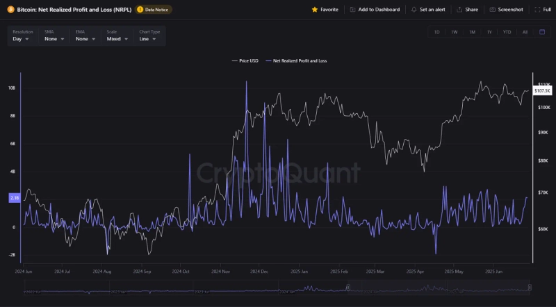 According to the on-chain analysis platform CryptoQuant, on the 29th, Onchain School analyst explained in a QuickTake report, "Looking at Bitcoin's Net Realized Profit/Loss (NRPL) metric, there hasn't been excessive profit-taking observed during the recent rally." This indicates a different pattern compared to the profit-taking behaviors that triggered sharp declines in the past.