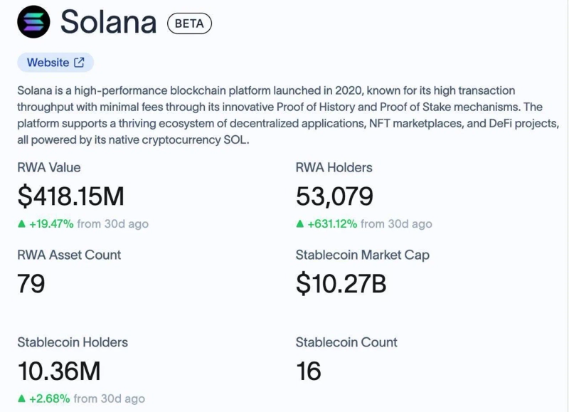 - It was reported that the number of RWA holders on Solana has increased by 631% in the past 30 days.