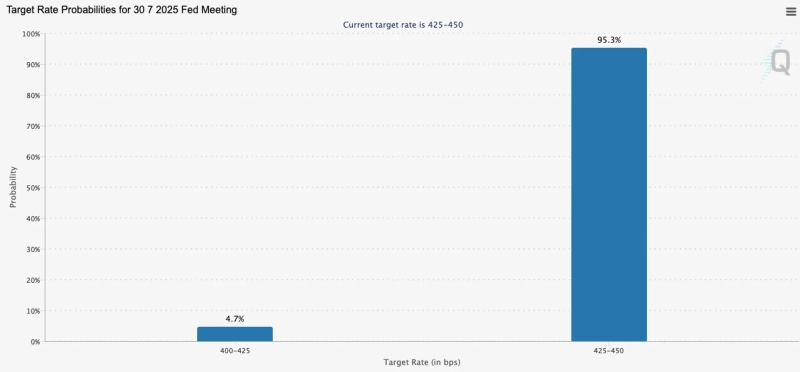 Expectations are also mounting for a gradual easing of monetary policy. According to CME FedWatch, as of 20:00, the US central bank, Fed, is forecast to keep interest rates unchanged in July with a 95.3% probability. The first rate cut is likely to occur in September, with odds of 62.9%.
