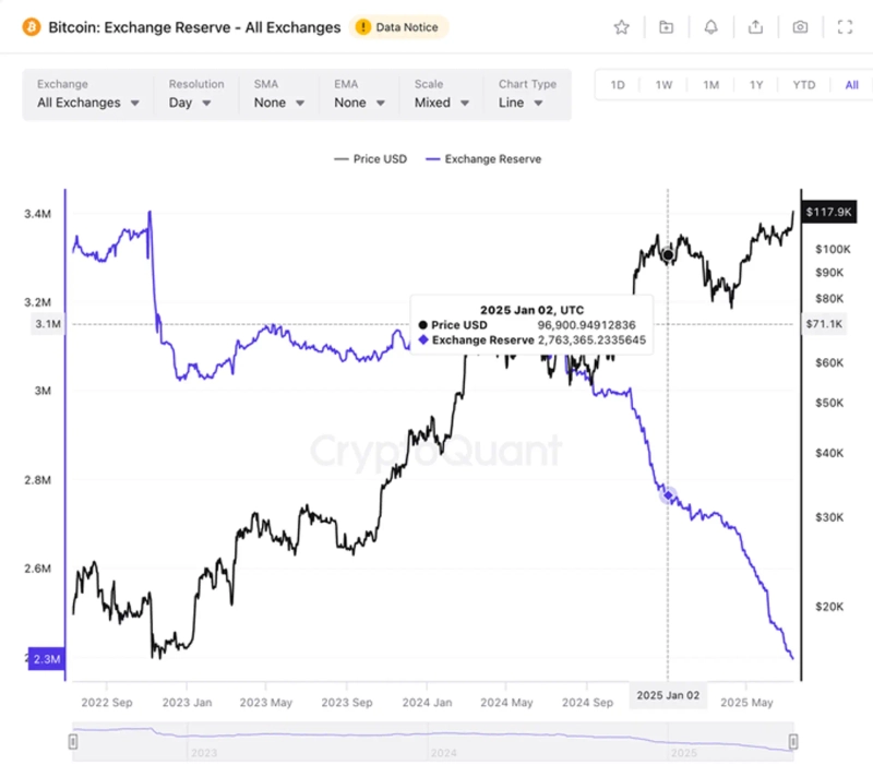 On the 11th, on-chain analyst 'Ai' stated on X (formerly Twitter), "Currently, centralized exchanges (CEX) hold about 2.4 million Bitcoins, which is approximately 360,000 fewer than at the beginning of the year."