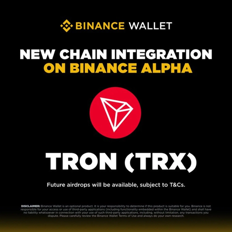 TRON (TRX) has signed an official partnership with the Binance Alpha ecosystem.