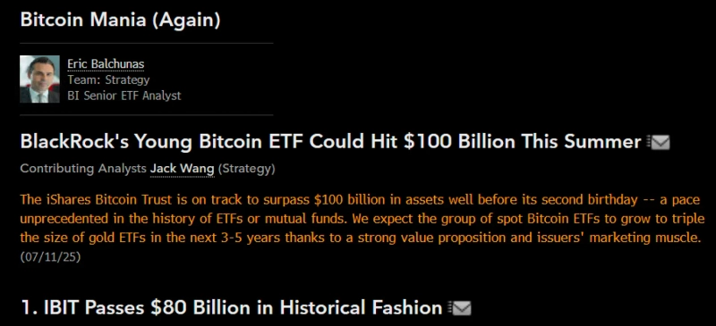 He evaluated that the spot Bitcoin ETF has achieved significant growth within just a year and a half of its launch. Balchunas commented, "Due to recent capital inflows, IBIT’s AUM has reached $88 billion in just a year and a half," adding, "It ranks 20th among all ETFs in the U.S., and 7th among all BlackRock ETFs." He also said, "It is the most profitable ETF for BlackRock," and praised it as "an incredible rate of growth."
