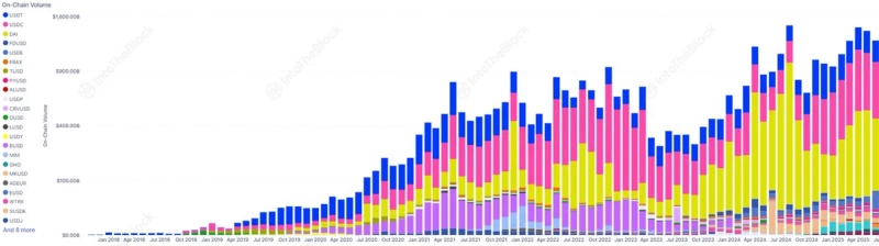 Last month, the on-chain stablecoin transaction volume surpassed $1.265 trillion.