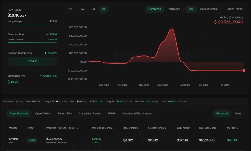 - James Wynn reportedly opened a 10x leverage long position on PEPE, with a position size of approximately $10,000.