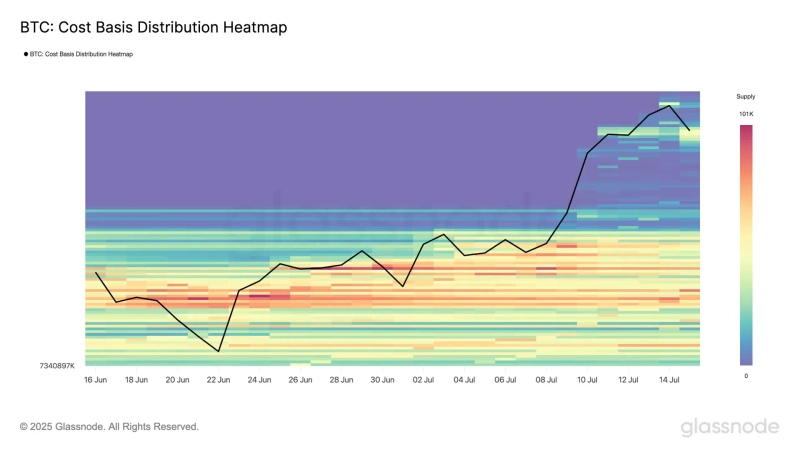 On the 16th (local time), Glassnode stated on X (formerly Twitter), "Investors accumulated approximately 196,600 BTC in the $116,000~$118,000 range," adding, "This amounts to about $23 billion, and aggressive buying is occurring despite short-term highs." They further added, "This is a strategic accumulation, anticipating further increases."