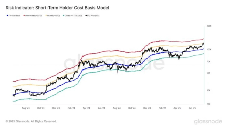 On the 18th, on-chain data analytics platform Glassnode announced on X (formerly Twitter), "BTC has reached the upper band of +1 standard deviation from the Short-Term Holder cost basis, which is about $120,000." This point has repeatedly acted as resistance during bullish phases.