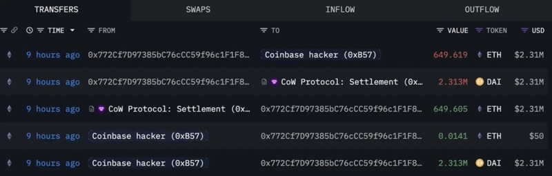 - It was reported that the Coinbase hacker began large-scale Ethereum (ETH) purchases using the stolen funds exceeding $300 million.