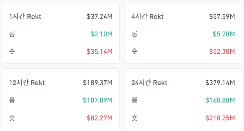 According to CoinGlass data on the 21st (local time), a total of $379.14 million worth of futures positions were liquidated in the virtual asset market over the past 24 hours. The market saw a higher number of liquidations for short (sell) positions. Specifically, $160.88 million worth of long positions were liquidated, while $218.25 million worth of short positions were closed.