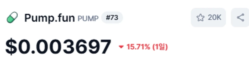 According to CoinMarketCap on the 22nd (local time), PUMP is currently trading at $0.003697, down 15.71% from the previous day. This is below the token offering (ICO) price of $0.004.