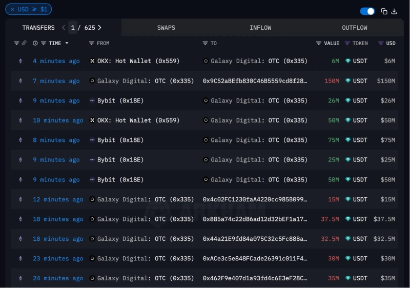 - In addition, Galaxy Digital was reported to have withdrawn USDT from major exchanges and is transferring it to Coinbase.