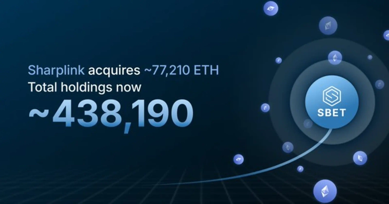 SharpLink Gaming purchases an additional 77,210 ETH… Total holdings surpass 438,000
