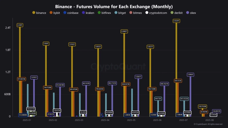 On the 5th, CryptoQuant, an on-chain analysis platform for virtual assets (cryptocurrencies), analyst maartunn delivered through a Quicktake report, "Binance's futures trading volume reached $2.55 trillion in July," adding, "This is the highest figure since January this year."