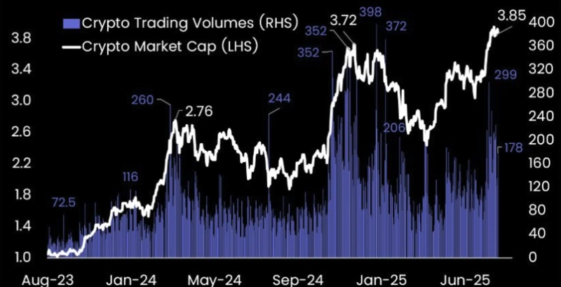 There is also an analysis that the recent decrease in trading volume could increase market caution regarding the continuity of the rally. Crypto analytics firm Matrixport stated in its research report, "Total cryptocurrency market capitalization reached a record high of $3.85 trillion at the end of July, but daily trading volume dropped significantly to $178 billion compared to the beginning of the year," adding, "With August lacking special catalysts, the market could enter a phase of short-term correction or move sideways."