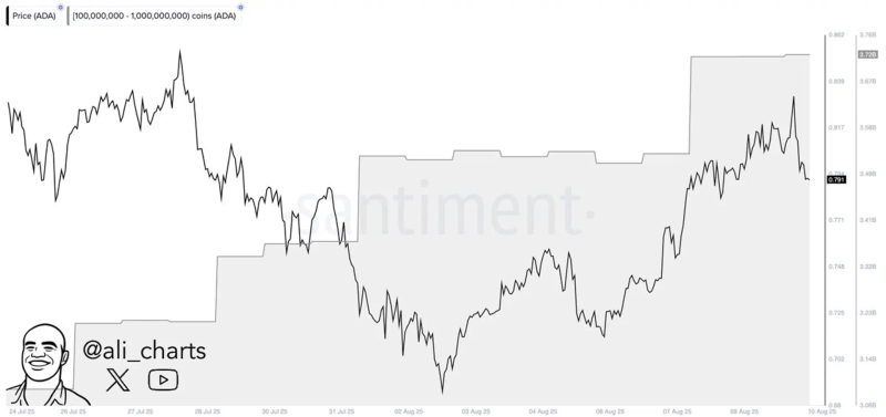 It has been observed that whales have accumulated more than 200 million Cardano (ADA) over the past two days.