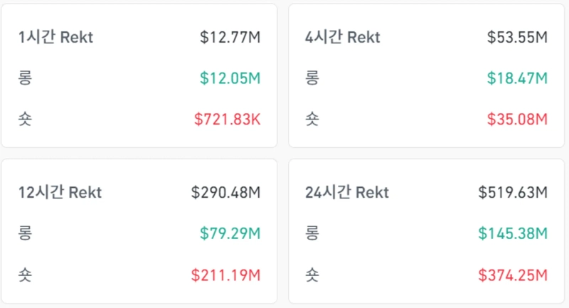 According to CoinGlass data on the 13th (local time), a total of $519.63 million worth of futures positions have been liquidated in the virtual asset market over the past 24 hours. Specifically, $145.38 million in long positions were liquidated, while $374.25 million in short positions were cleared.
