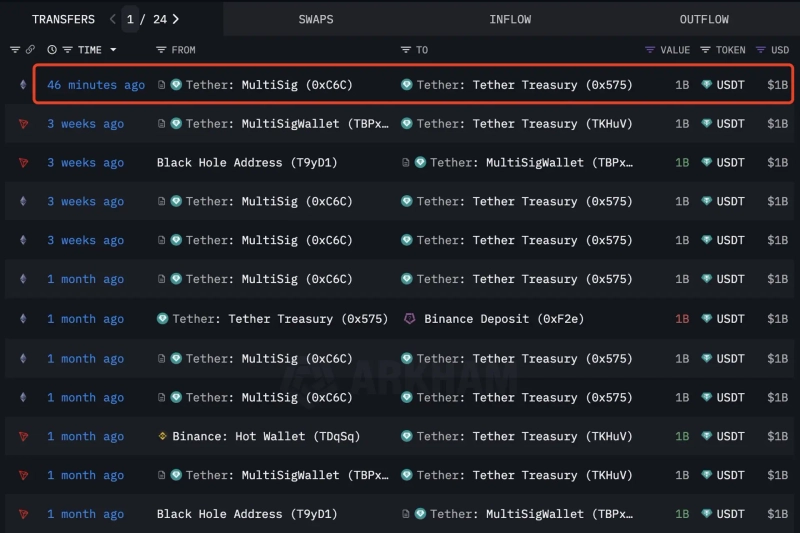 On the 15th (local time), Lookonchain announced on X (formerly Twitter), “Just now, $1 billion USDT has been newly issued,” adding, “The total amount of USDT and USDC issued over the past month has reached $9.5 billion.”