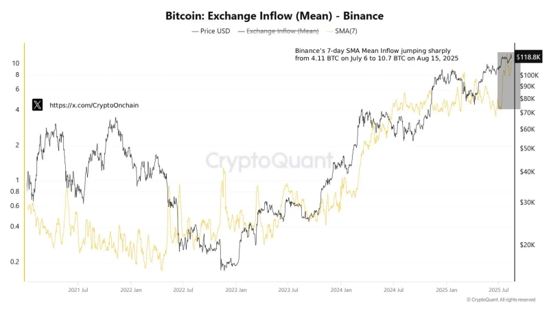On the 15th (local time), a CryptoQuant contributor said on X (formerly Twitter), "There has been a sharp increase in the amount of Bitcoin being deposited to Binance," adding that "the surge in inflows is further heightening short-term selling pressure." He went on to say, "If demand fails to absorb the supply, there is a possibility that Bitcoin may decline in the coming days."