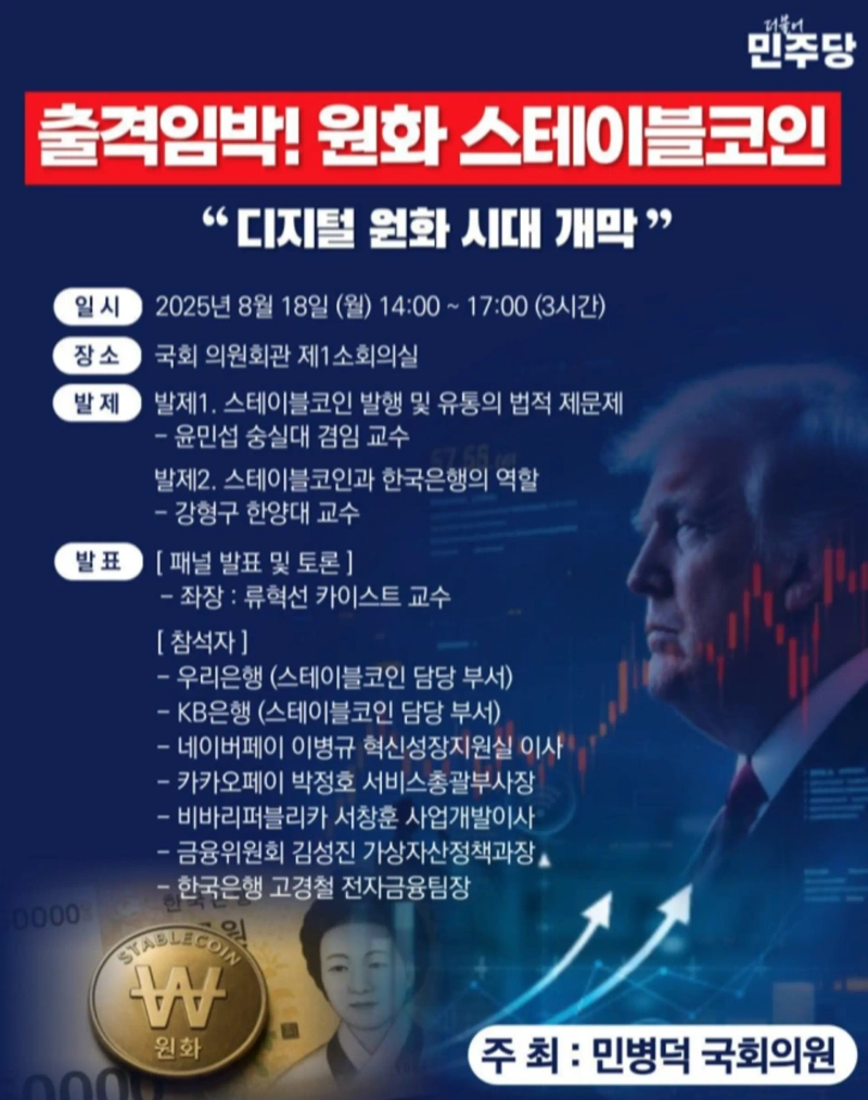 On the 17th, Min Byung-duk of the Democratic Party of Korea announced that a forum titled 'Launch Imminent! Korean Won Stablecoin: The Dawn of the Digital Won Era' would be held at 2:00 p.m. on the 18th in Meeting Room 1 of the National Assembly Members' Office Building. This forum is expected to serve as a venue for frank opinion exchanges between industry and regulators.