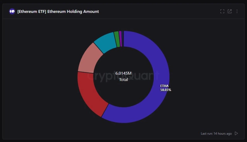 - CryptoQuant stated, "BlackRock's ETHA accounts for 58% of the entire Ethereum ETF market."