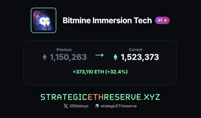 It has been revealed that BitMine holds 1,523,373 Ethereum (ETH).