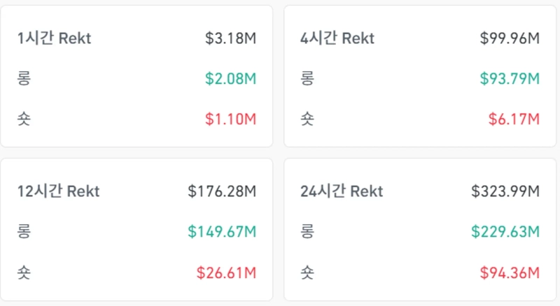 According to CoinGlass data on the 19th (local time), a total of $323.99 million worth of futures positions were liquidated in the cryptocurrency market in the past 24 hours. As major cryptocurrencies like Bitcoin (BTC) and Ethereum (ETH) declined, long (buy) position liquidations were predominant. Specifically, $229.63 million in long positions were liquidated, while short (sell) positions saw $94.36 million in liquidations.