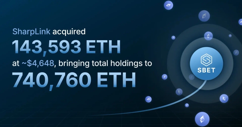 - SharpLink Gaming announced the additional purchase of 143,593 Ethereum (ETH).