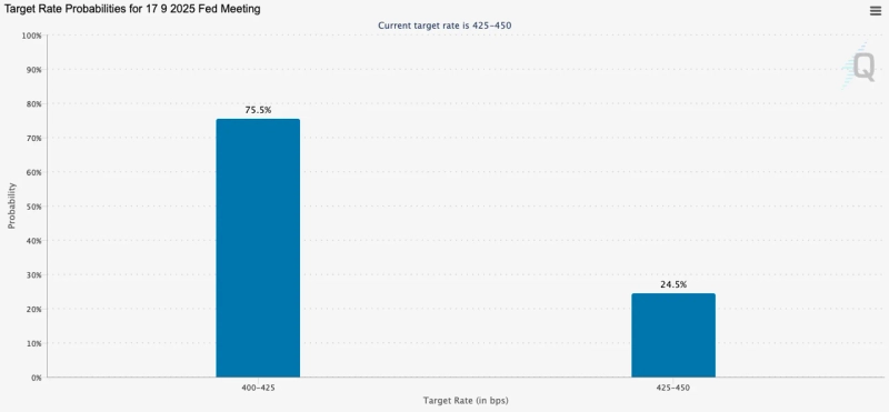 Meanwhile, according to the Chicago Mercantile Exchange (CME) FedWatch tool, as of 1 PM on this day, the probability of the Fed holding rates steady in September was estimated at 75.5%. As U.S. producer prices in July rose more than expected, hopes for a rate cut have eased slightly from the previous 90% levels.