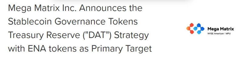 NASDAQ-listed MegaMatrix has announced plans to reserve Ethena (ENA).
