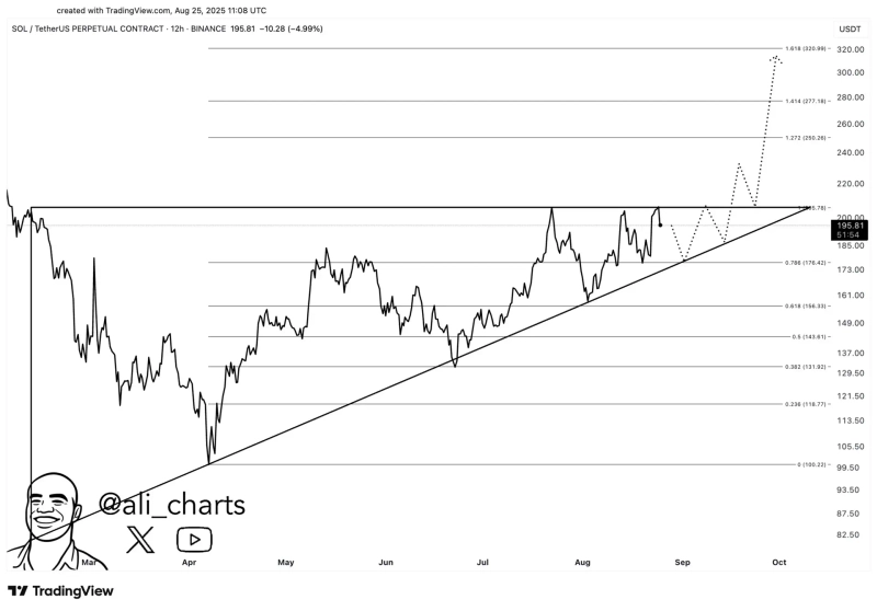 - Analyst Ali Martinez reported that the target price for Solana (SOL) still remains at $300.