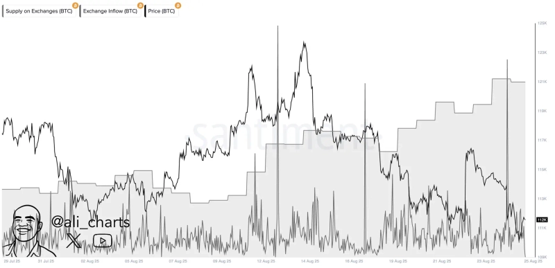 On the 26th (local time), cryptocurrency analyst Ali Martinez announced on X (formerly Twitter) that "20,000 BTC have flowed into crypto exchanges over the past two weeks," adding that "this amounts to approximately $2.4 billion."